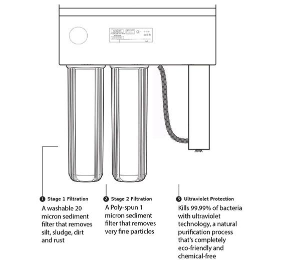 Protect your home and family from unwanted sediment and contaminants in your water supply with our new WHOLE HOUSE ultra violet water filtration system. Protecting not only your health and well being, but your plumbing system from unwanted sediment and debris commonly found in mains water supplies.
